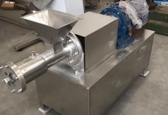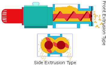 經(jīng)混合、捏和的濕物料或低軟化點(diǎn)(一般指小于60℃)物料,在螺桿輸送過(guò)程所產(chǎn)生的擠壓力作用下,被從機(jī)頭模板開(kāi)孔處擠出,形成條狀;再經(jīng)過(guò)干燥或冷卻得到短柱狀顆粒成品,從而實(shí)現(xiàn)將粉狀產(chǎn)品改變?yōu)榫鶆虻念w粒產(chǎn)品的目的。顆粒形狀為圓柱狀(或特殊異形截面),成品顆粒直徑可由摸板開(kāi)孔孔徑調(diào)節(jié)和控制:側(cè)出料為0.6-2.0mm,前出料為1.0-12mm。自然斷裂長(zhǎng)度取決于物料粘結(jié)強(qiáng)度,一般為直徑的1.25-2,0倍范圍內(nèi)。對(duì)長(zhǎng)度有特殊要求的前擠出型可采用外切粒的方式,這樣可以得到相對(duì)均勻的顆粒成品。多數(shù)情況下成粒率≥95%。